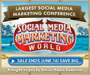 You can now sign up for Social Media Marketing World 2016. It’s the world’s largest social media marketing conference. By attending, you’ll make connections with 100+ of the world’s top social media pros (plus 3,000 of your peers) and you’ll discover amazing ideas that’ll transform your social media marketing. Speakers include Guy Kawasaki, Mari Smith, Michael Hyatt, Jay Baer, and Michael Stelzner.