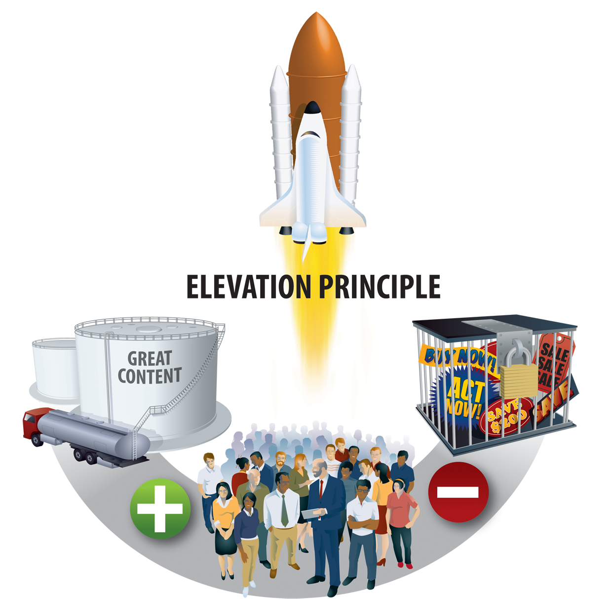 What is the Elevation Principle and why is it useful? At its core it's all about focusing on the needs of people with content. Here's the simple formula: Great content plus other people minus marketing messages equals growth.